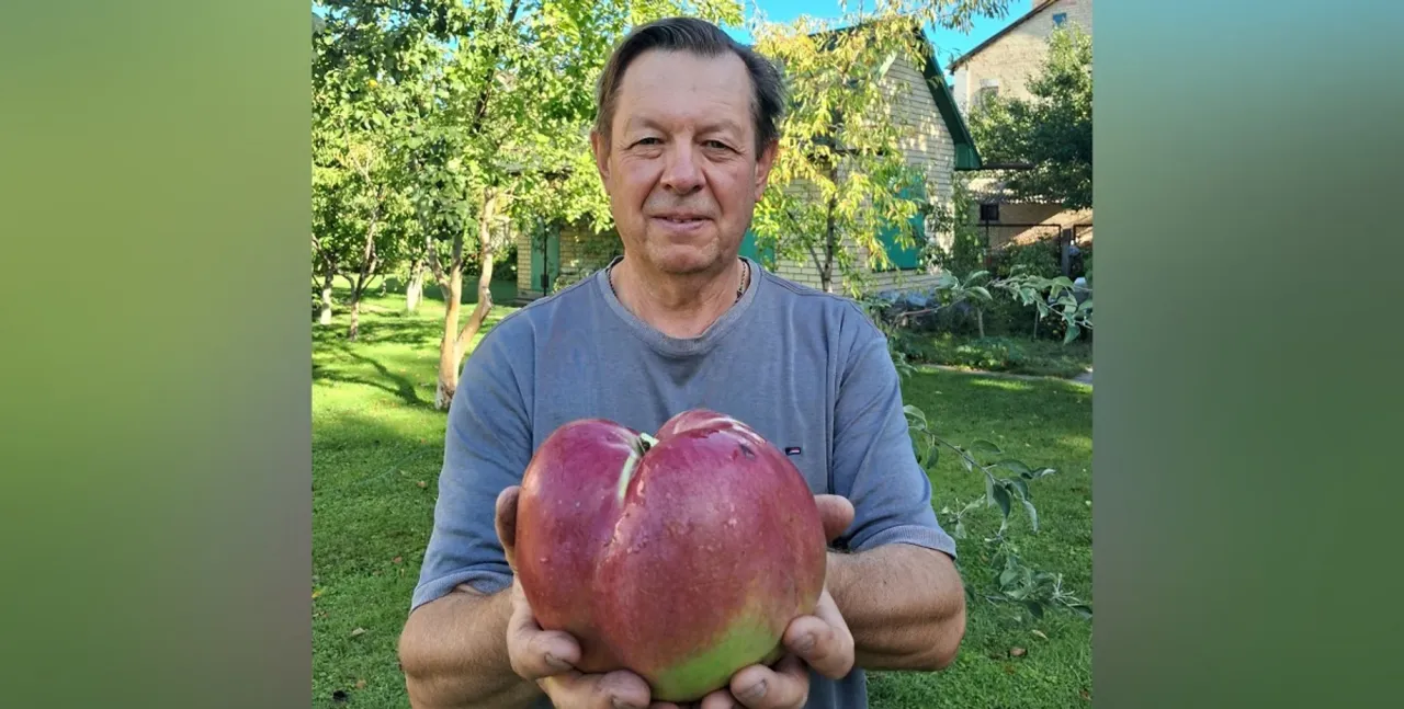 Фруктова сенсація в Києві: 63-річний місцевий житель Юрій Кожем’якін виростив яблуко, вага якого сягнула вражаючих 1,281 кг. Попри основну роботу ветлікарем, чоловік присвячує все дозвілля саду, що й дозволило йому отримати такий гігантський врожай.