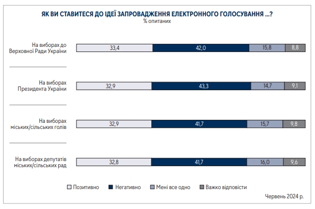 Відносна більшість (42-43%) опитаних ставляться негативно до інтернет-виборів.