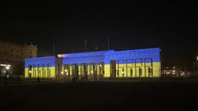 До третьої річниці українського опору повномасштабній російській агресії у столиці Австрії підсвітили так звані “Бургтор”, також відомі як “Гельдентор” (“Ворота героїв”), у синьо-жовті кольори на знак солідарності з українським народом, інформує Укрінформ.