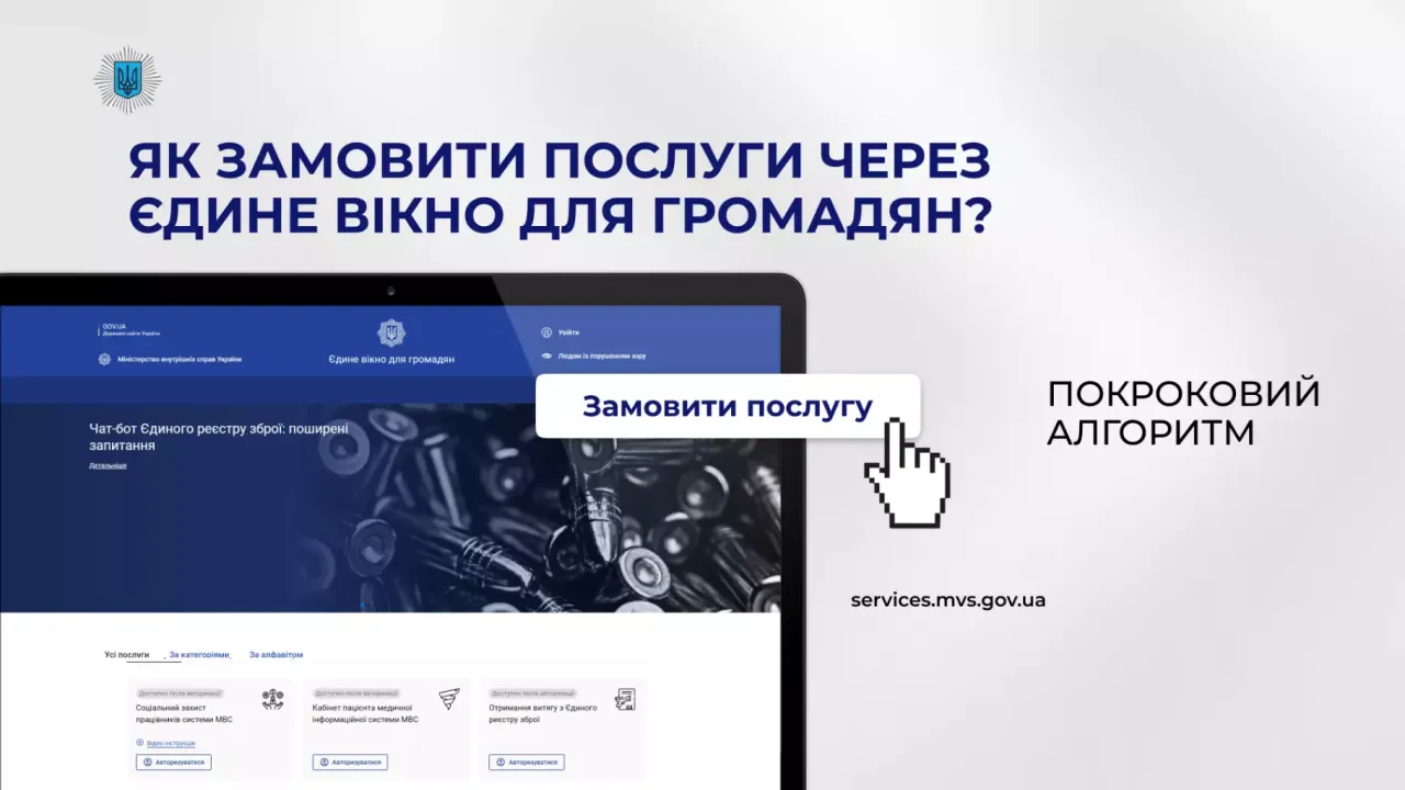 Зокрема, на офіційному порталі МВС у розділі «Єдине вікно для громадян» можна отримати наступні послуги щодо: