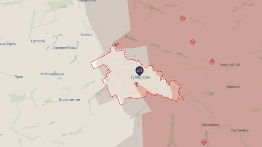 За даними аналітичного моніторингового проекту DeepState, Сили оборони України продовжують утримувати позиції здебільшого Гуляйполя Запорізької області. Водночас аналітики попереджають: подальша оборона міста стає дедалі складнішою через особливості місцевості та характер бойових дій.